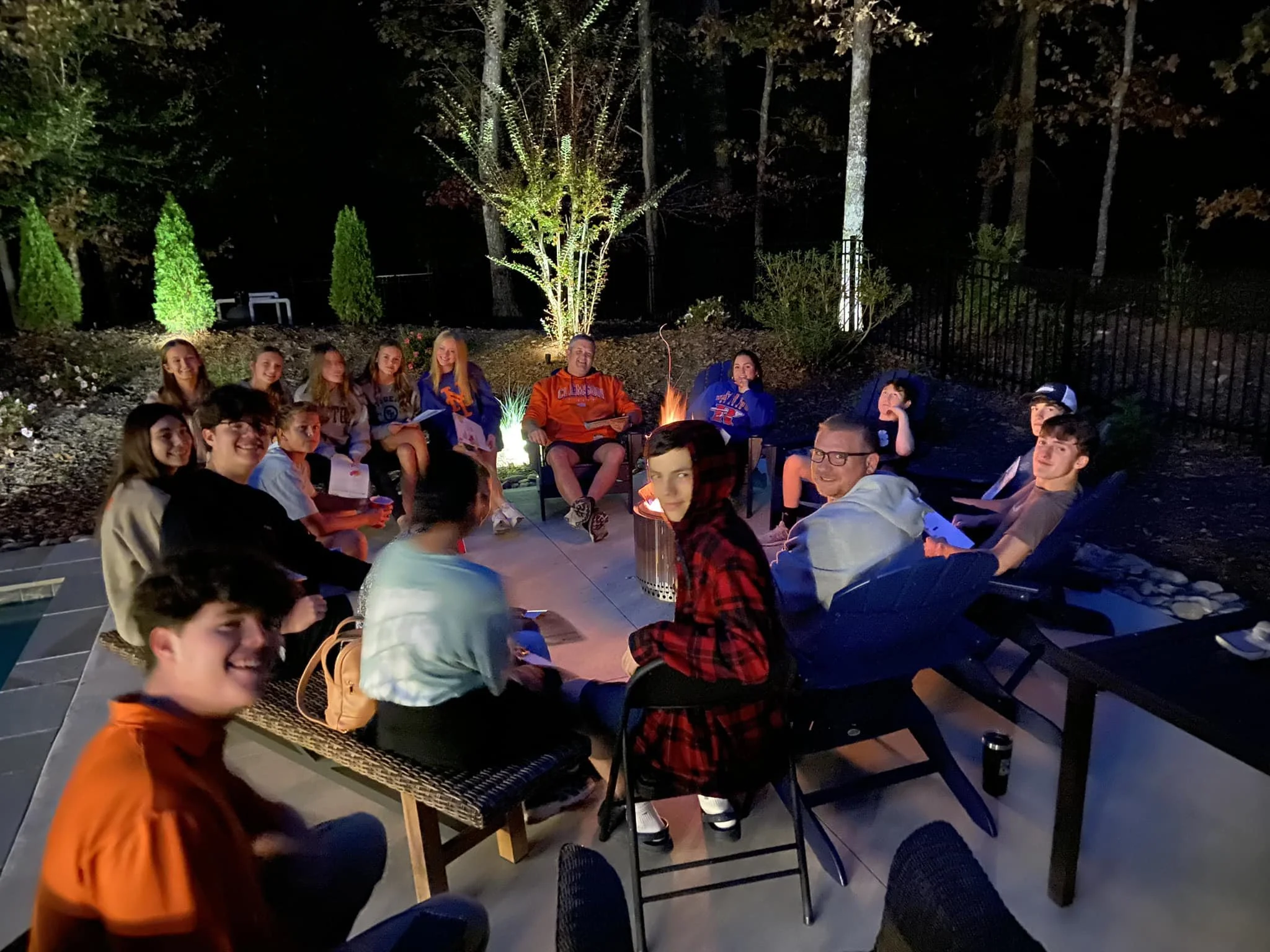 Occasionally, our high school students gather at Pastor Travis’ home or at the church pavilion with other adult volunteers to just talk about issues of life and faith around the campfire. This setting always breeds open and honest discussion to help build and equip our kids for a life of faith and discipleship.